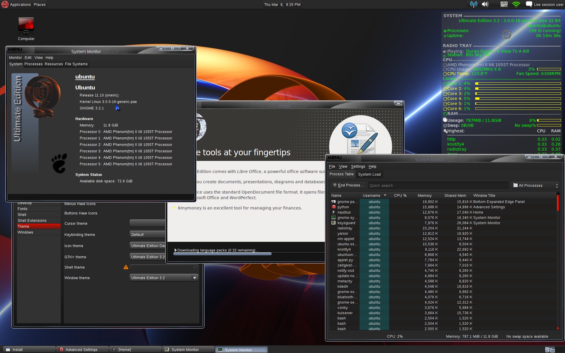 基于 Ubuntu Oneiric Ocelot 11.10 的 Ultimate Edition 3.2 与以前的版本相比,发生了巨大的变化。