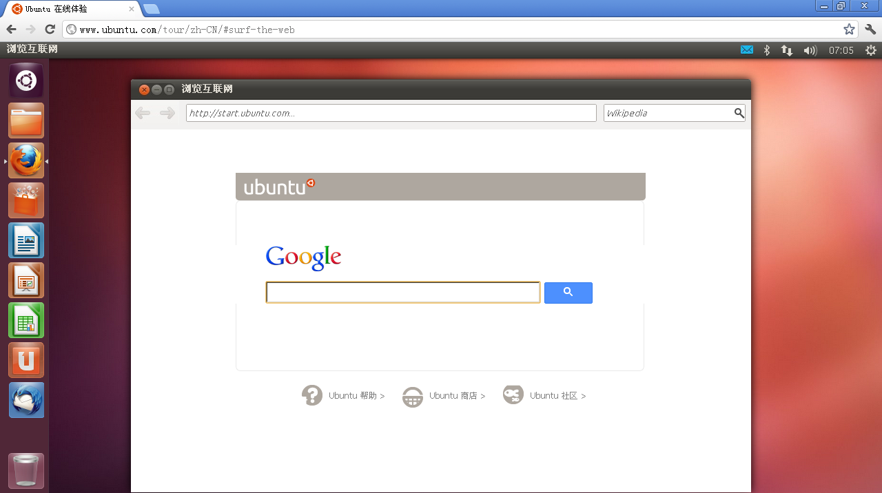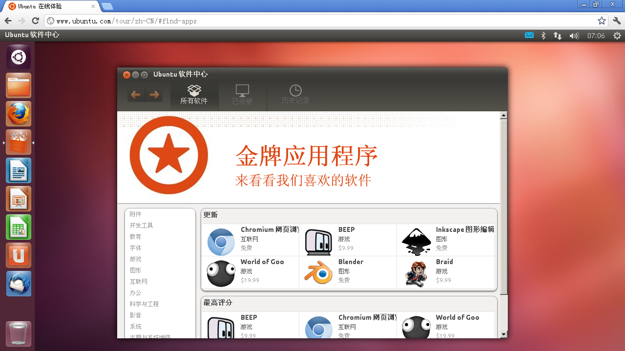 Ubuntu 12.04 在线体验 Ubuntu 12.04 已经正式发布了,大家可以去下载安装体验。 也可以在线体验Ubuntu 12.04http://www.ubuntu.com/tour/zh-CN