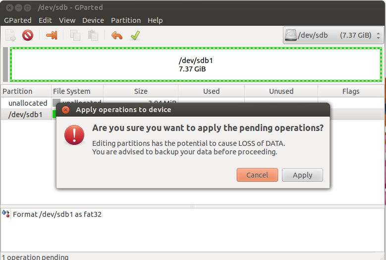 您可以用鼠标右键来点击您的设备,并选择 unmount 来卸载设备。然后再去格式化它。您可以选择以 “FAT32” 格式来格式化它。