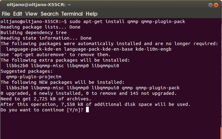现在开始安装Qmmp 0.7.2;打开新的终端,输入下列命令: