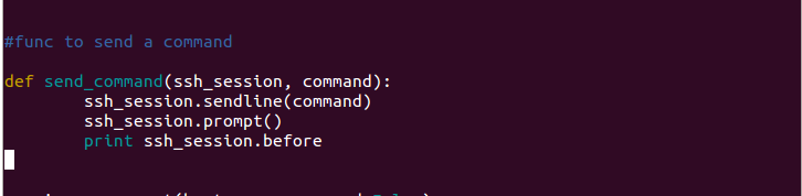 下一步是在两个机器间的ssh连接建立之后,创建一个函数来给机器发送命令.