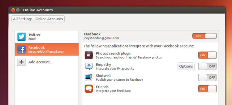 该方式已经包含在桌面 Ubuntu 一些版本中。超过300个流行网站-包括Gmail, Yahoo! 和Rd.io-可以和桌面无缝集成。