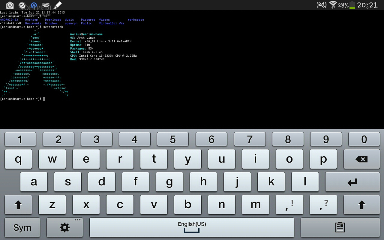 这就是我的Arch Linux机器,可以通过我的安卓平板上的JuiceSSH客户端访问到。如果在这个教程中你遇到问题,请在下面进行评论。