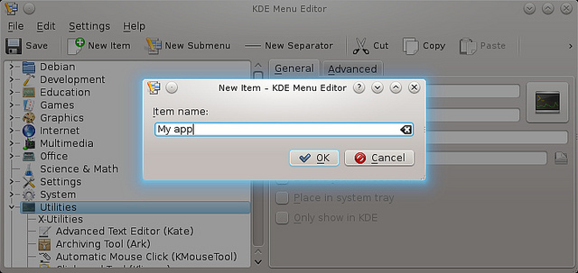 在你要创建快捷方式的合适分类处(例如, “Utilities”)右击,点击位于顶部的“新条目”按钮,键入应用的名字。