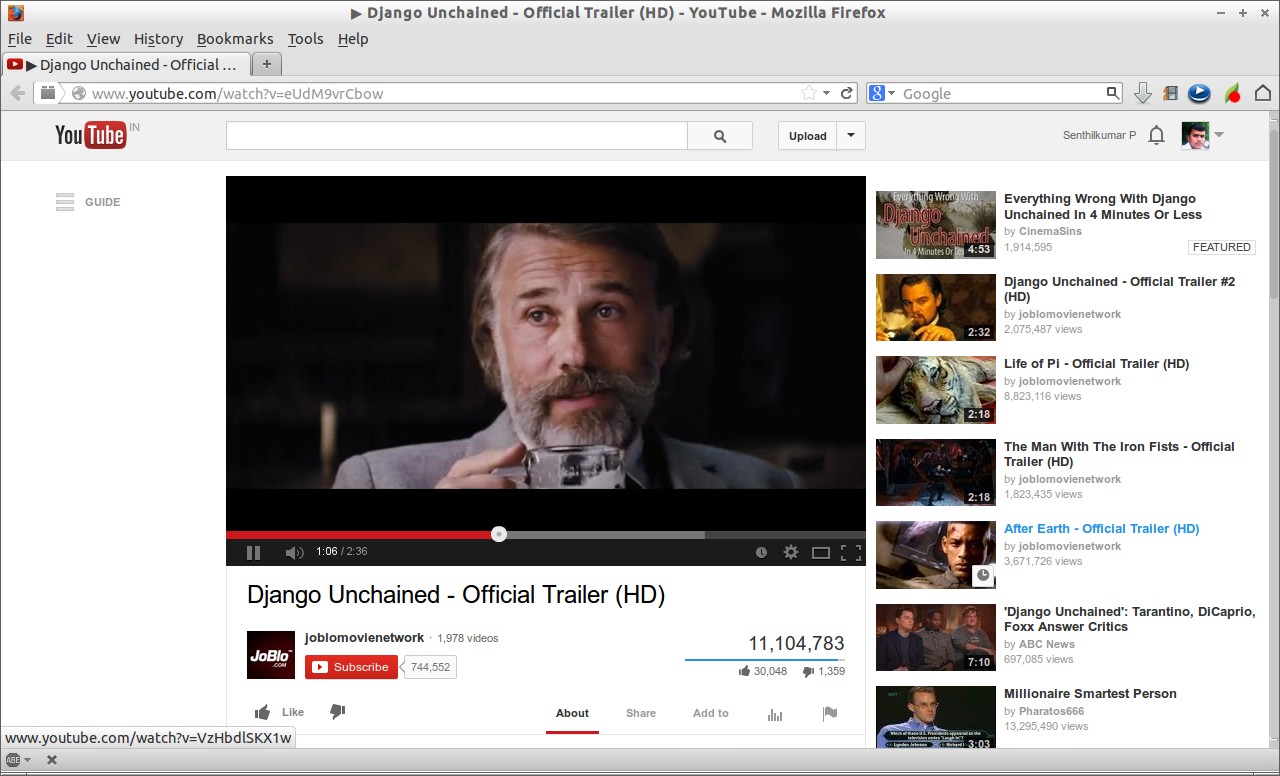 更重要的是你可以在下载一部电影之前先观看它的预告片。点击观看预告片按钮,预告片就会在一个新窗口中打开,像下面这样。