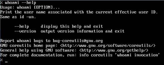 % whoamin –help