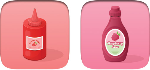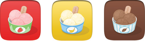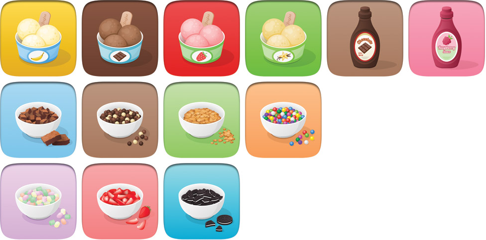 最初我以缩略图和设计思想的方式使用一种扁平外观的图标。这种方式对冰激凌来说很有用,但是对点缀物作用不大 —— 不久之后我发现它们变成半分离的现代主义,很难辨认。