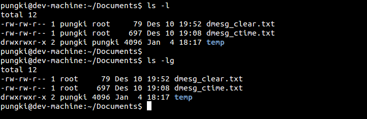 $ ls -g