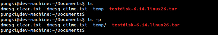 $ ls -p
