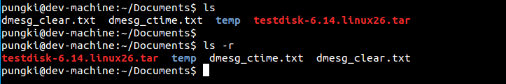 你或许需要在列出条目时反转顺序。要这么做,你可以使用**-r**选项。