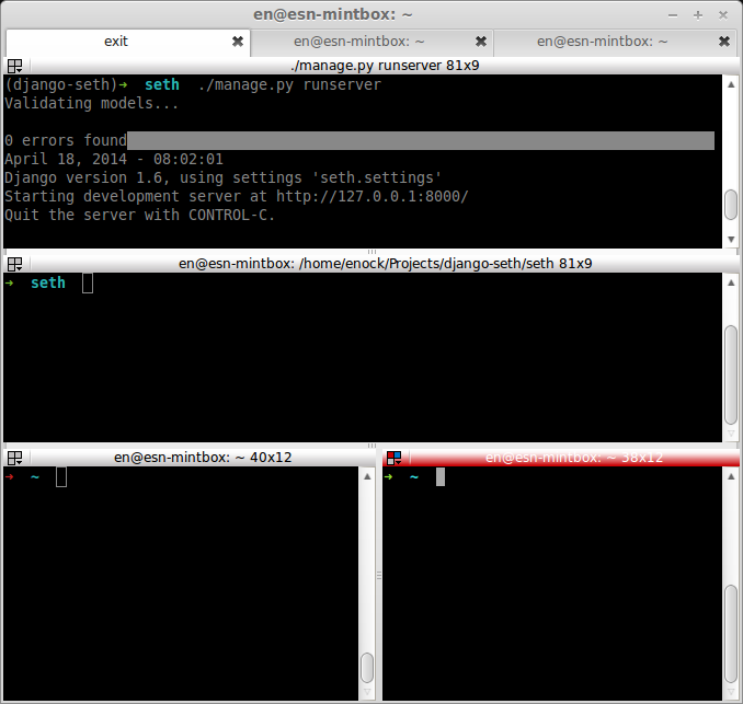 - 可在上面的窗口里面使用你自己喜欢的 shell (Bash、zsh 等等,Terminator 不会限制它们)