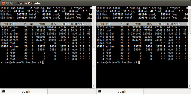 同样大名鼎鼎,Konsole在KDE环境下等同于Gnome-terminal。Konsole额外支持的一点是分割视图和书签目录。
