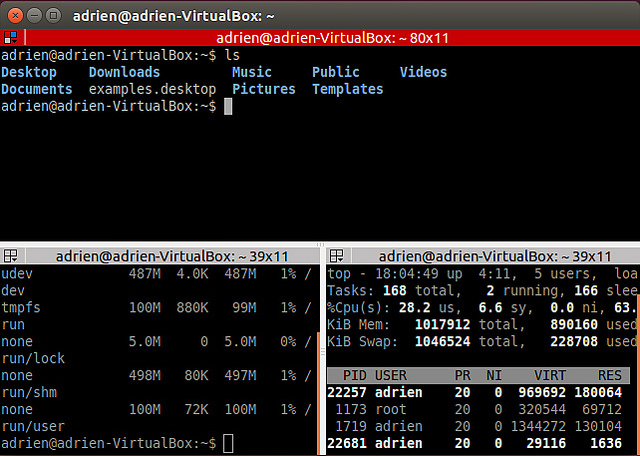 现在让我们看看终端模拟器中的劳斯莱斯,Terminator是这些终端里面功能最完备的一款,它包括了标签、水平和垂直分割视图、截屏、用户配置、插件、布局管理。可能还有一些你永远都用不到的选项。它的缺点是太大和大量的资源消耗,这些就是你付出的代价。