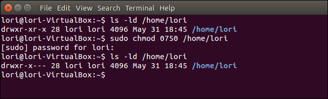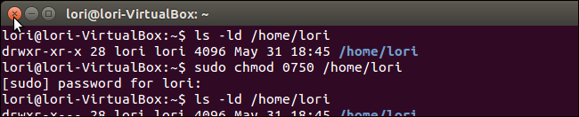 然而,和你同组的用户可以读和执行你家目录中的文件和文件夹。如果你不想除你之外的任何人访问你的家目录,可以在chmod命令中输入“0700”。