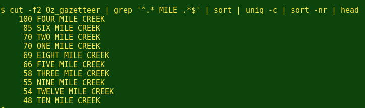 从多列的表中做’top 10’等排名,需要更多些的命令行工具。我将会在未来的文章中证明他们的用处。