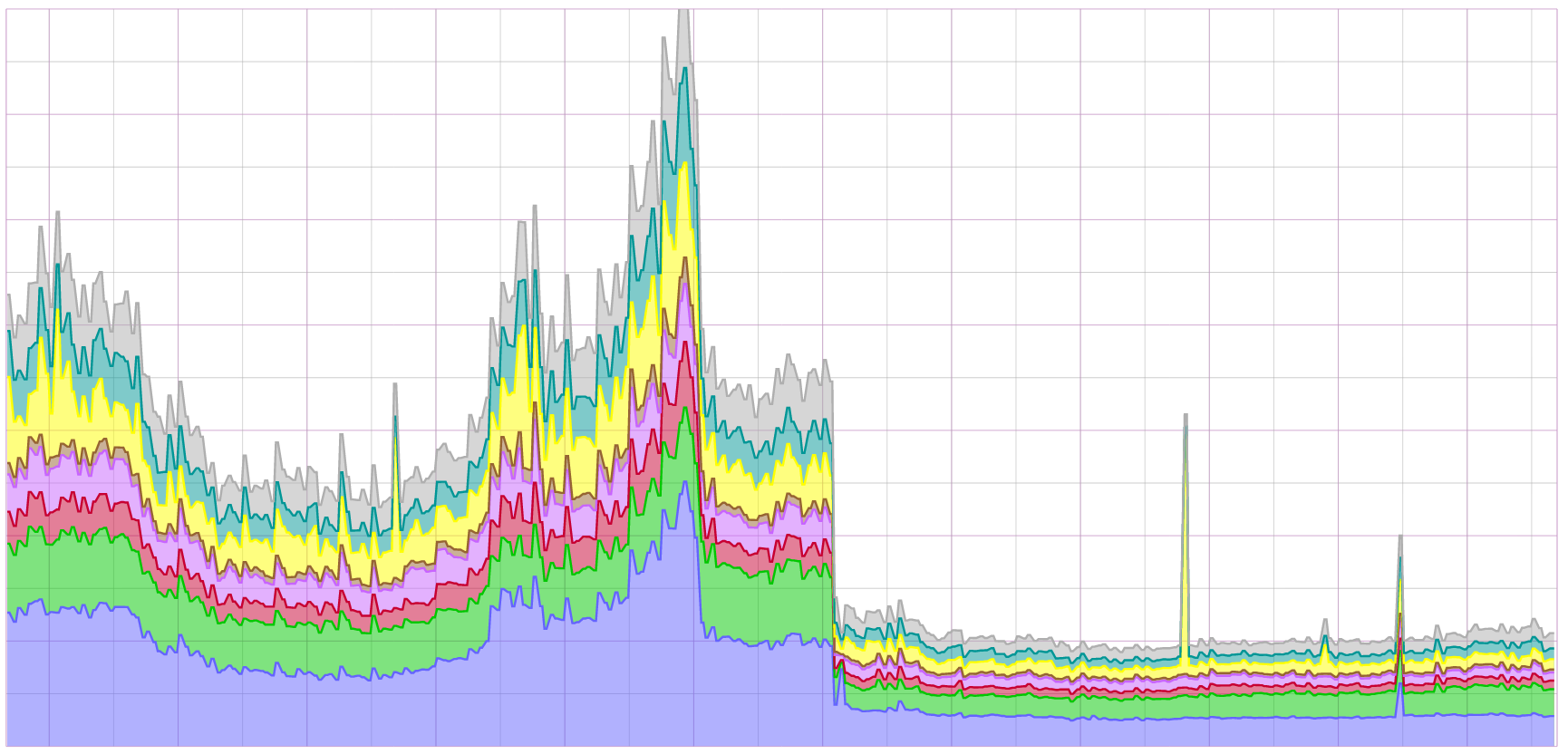 在接下来的几周时间里,我们密切监视着 GitHub.com 的性能和响应时间。我们发现迁移后网站的平均加载时间减少一半,并且在99%的时间里,能减少三分之二: