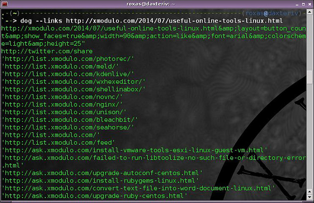 Dog 比 cat 好, 至少这个程序自己是这么宣称的。 你应该相信它一次。 所有 cat 命令能做的事, dog 都做的更好。 除了仅仅能在控制台上显示一些文本流之外, dog 还可以对其进行过滤。 例如, 你可以使用如下语法来获得网页上的所有图片: