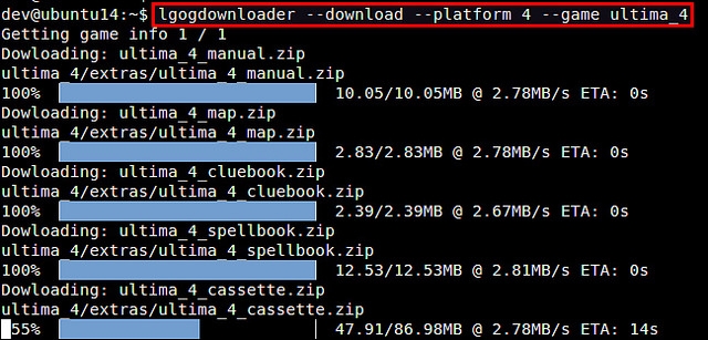 你可以注意到lgogdownloader允许你恢复之前中断的下载,这当下载的游戏并不小时是很有用的。