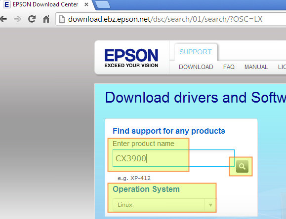 6、 如果打印机如果不被CUPS支持(没有在下一页中列出来),我们必须从生产厂家的网站上下载驱动(如http://download.ebz.epson.net/dsc/search/01/search/?OSC=LX),安装完后回到该页。