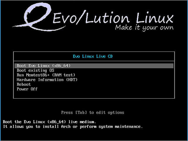 对于那些满怀抱负而又缺乏知识的生灵,有一个叫Evo/Lution Live ISO的ISO镜像格式安装器可以拯救他们。即便它貌似像发行版一样启动,但它其实除了辅助安装Arch Linux准系统之外啥都不干。Evo/Lution是一个项目,它旨在通过提供Arch的简单安装方式来为Arch的增加更多的用户基数,就像为那些用户提供全面帮助和文档的社区一样。在这样一个组合中,Evo是Live CD(不可安装),而Lution是个安装器本身。项目创立者看到了Arch及其衍生发行版的开发者和用户之间的巨大鸿沟,而想要在所有参与者之间构筑一个身份平等的社区。