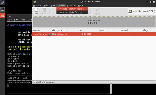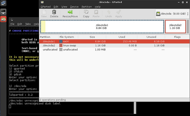 安装器带领你穿越分区世界,你可以选择使用gparted、gdisk,以及cfdisk。