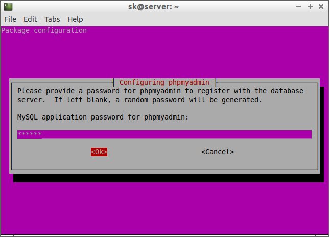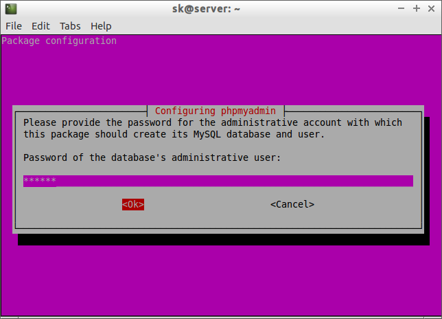 输入 phpmyadmin 帐号的 MySQL 密码: