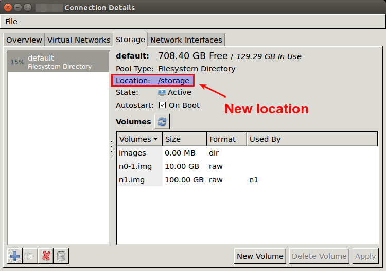 实际上,你可以非常容易地改变libvirt镜像的默认目录,或者称之为“存储池”。