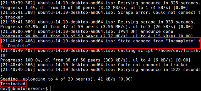$ transmission-cli -w ~/iso -D -u 50 -f ~/finish.sh ubuntu-14.10-desktop-amd64.iso.torrent
