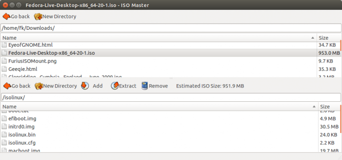 ISO Master是一个开源、易用的、图形化CD 镜像编辑器,适用于Linux 和BSD 。可以从ISO 里提取文件,给ISO 里面添加文件,创建一个可引导的ISO,这些都是在一个可视化的用户界面完成的。可以打开ISO,NRG 和一些MDF文件,但是只能保存成ISO 格式。