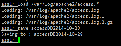 当 asql 完成对 access 日志的加载后,我们就可以开始数据库查询了。注意一下,加载后生成的数据库是 “temporary” (临时)的,意思就是数据库会在你退出 asql 的时候被清除。如果你想要保留数据库,你必须先将其保存为一个文件。我们会在后面介绍如何这么做(参考 example 3 和 4)。