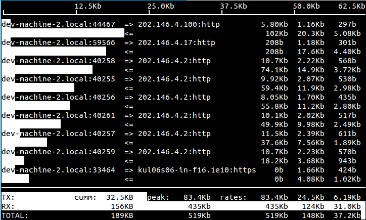 更多的信息参考Linux流量监控工具:iftop。