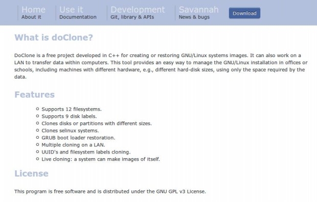 doClone 是一个免费软件项目,被开发用于轻松地克隆 Linux 系统分区。它由 C++ 编写而成,支持多达 12 种不同的文件系统。它能够修复 Grub 引导器,还能通过局域网传输镜像到另一台计算机。它还提供了热同步功能,这意味着你可以在系统正在运行的时候对它进行克隆操作。