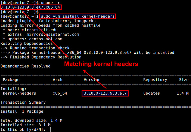 $ sudo yum install kernel-headers