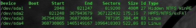 带有‘*’的就是启动分区。对于我,就是/dev/sda1,用Grub语言描述就是(hd0,1)。