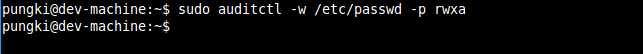 - $ sudo auditctl -w /etc/passwd -p rwxa