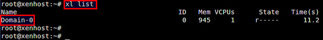 Xen 虚拟机监视器带有一个管理 Xen 的命令行程序叫做 xl,可以用来创建和管理 Xen 虚拟机。使用 xl 命令来检查 Xen 是否成功安装了。