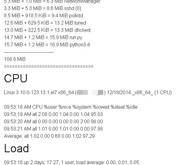 我已经加了更多的代码来显示CPU、I/O和平均负载。