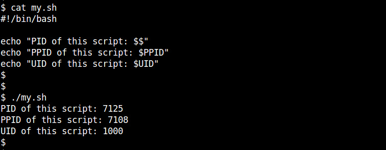 上面输出中,PID每次执行都会变化。这个因为每次运行都会创建一个新的shell。另一方面,PPID每次都会一样只要你在同一个shell中运行。