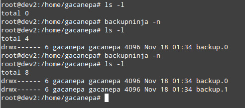 当我们第二次运行 backupninja 时, backup.0 将会被重新创建,而 backup.1 保持不动。