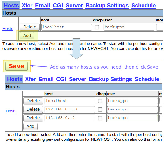 一旦 CentOS 和 Windows 主机都准备完毕,使用 Web 界面将它们添加到 BackupPC: