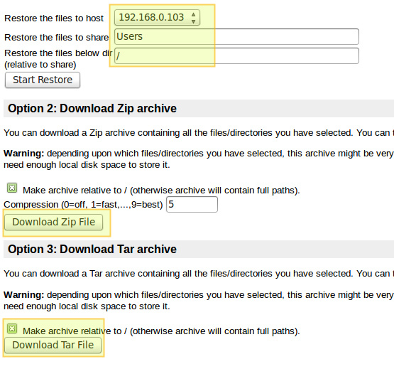 如若你想,你可以下载一个包含所有你想备份的内容的 zip 或 tar 文件: