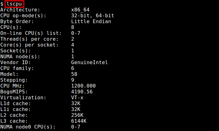 根据你的需要,有各种各样的关于你的CPU处理器信息你需要了解,比如CPU供应商名、模型名、时钟频率、插槽/内核的数量, L1/L2/L3缓存配置、可用的处理器能力(比如:硬件虚拟化、AES, MMX, SSE)等等。在Linux中,有许多命令行或基于GUI的工具就能来展示你的CPU硬件的相关具体信息。
