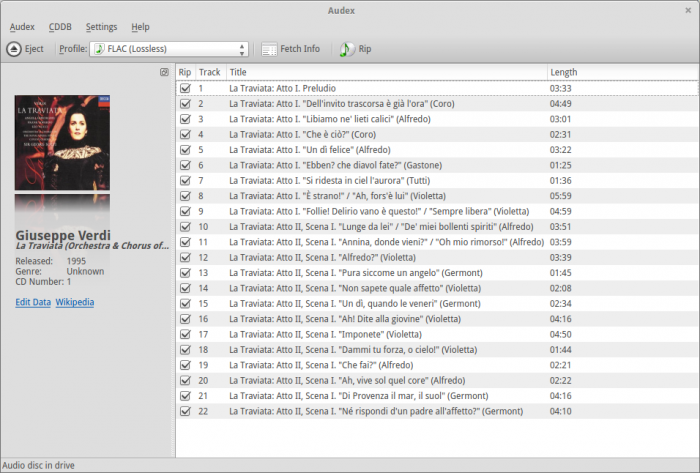 Audex是个简单易用的开源的音频CD提取应用。虽然它还处于早期开发阶段,但这个KDE桌面工具足够稳定、智能和简单易用。
