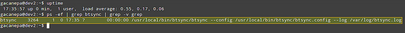 现在重启试试,看看btsync是否正在由预期中的用户运行: