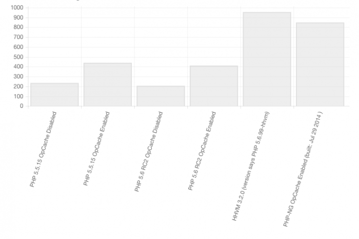 - PHP 5.5.9, PHP 5.5.15, PHP 5.6.0 RC2, PHP-NG (20140718-git-6cc487d)和HHVM 3.2.0 (版本是PHP 5.6.99-hhvm)