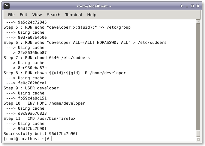 # docker build --rm -t firefox .