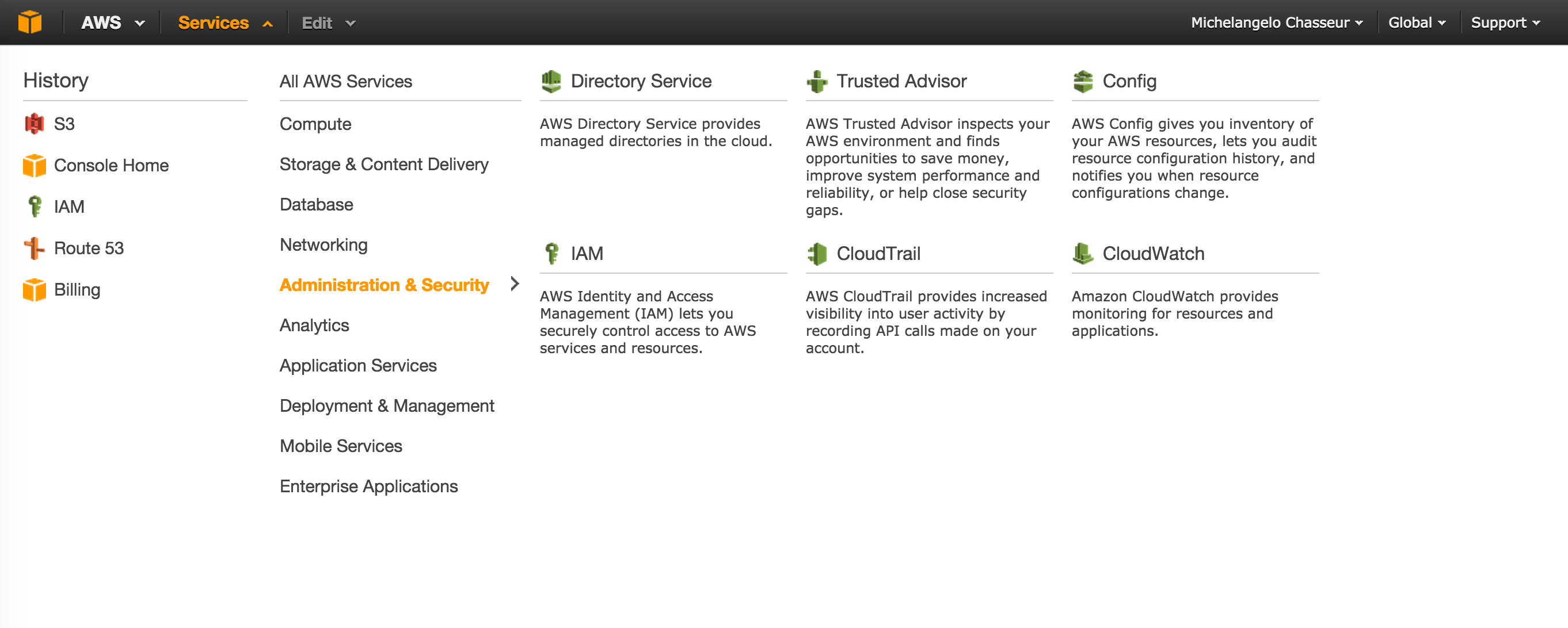 我们现在将要创建一个新的用户。退回到AWS控制台然后选择IAM(Identity & Access Management)。