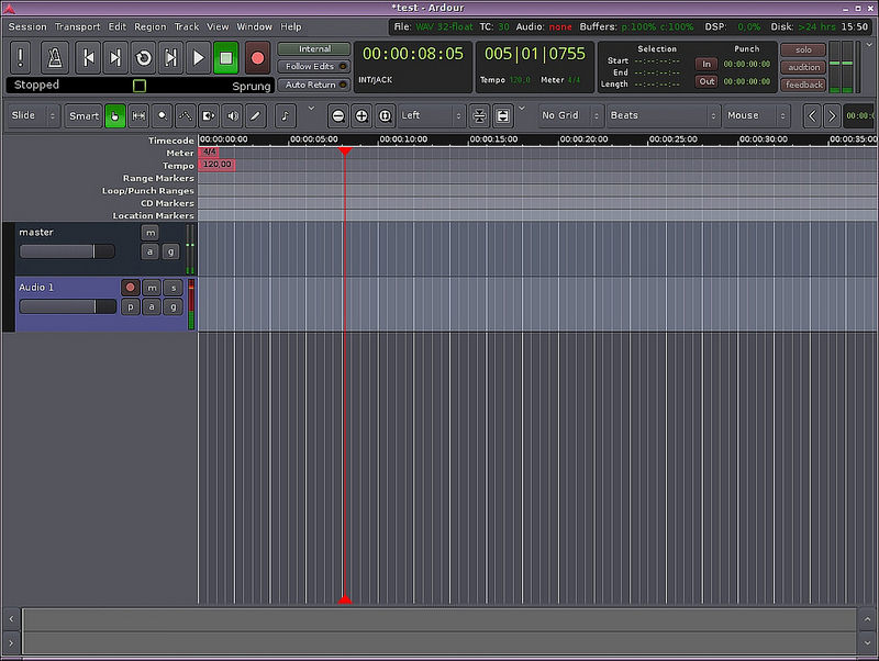 接下来谈论一些复杂的工具,Ardour是一套完整的可以录制、编辑和混音的软件。这个设计吸引了所有的专业人员,Ardour在声音和插件方面超出我的想象。如果您在寻找一头野兽并且不惧怕驯服它,那么Ardour或许是一个不错的选择。再次,它的界面和丰富的文档,尤其是它首次启动时的配置工具都是它迷人魅力的一部分。