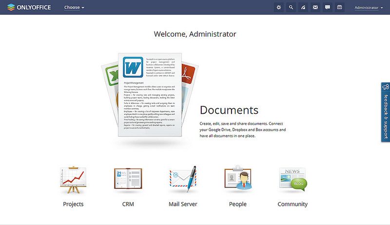 ONLYOFFICE 是一款集成了文档、电子邮件、事件、任务和客户关系管理工具的开源在线办公套件。