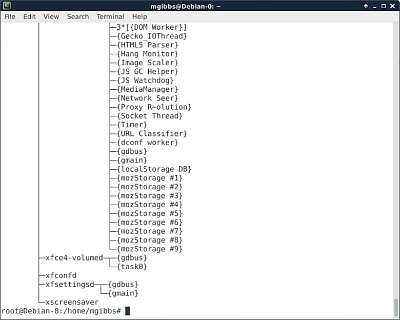 Pstree“以树状图显示正在运行中的进程。这个进程树是以某个 pid 为根节点的,如果pid被省略的话那树是以init为根节点的。如果指定用户名,那所有进程树都会以该用户所属的进程为父进程进行显示。”以树状图来帮你将进程之间的所属关系进行分类,这的确是个很有效的工具(戳这里)。